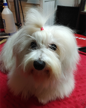 Ella was born April 27, 2020 in the midst of the Covid-19 pandemic. She is one of the reasons I love this breed she is always happy. When she comes to you she has the biggest smile any of my Cotons have had. She absolutely loves to play and her best friend is Coton CPH's Keep Me Safe Kenobi. They chase each other around the yard rolling, barking and grabbing each others tail. Wow! a real going concern. I kept her as she is from Sugar's last litter. Her show career has been delayed due to Covid-19 but her health testing has started.
